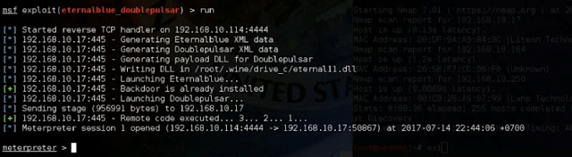 And Now. i will Show you how you can hack a windows in KALI LINUX use eternalblue doublepulsar and smb_ms17_010.At the centre of these ransomware outbreaks is a Microsoft Windows security vulnerability called EternalBlue. To keep you up to speed on the exploit here's everything we know about it.Tens of thousands of computers have been hit by two major ransomware attacks in recent months — WannaCry, which took down large parts of the NHS, and Petya/NonPetya, a suspected worm that's still wreaking havoc across the globe.